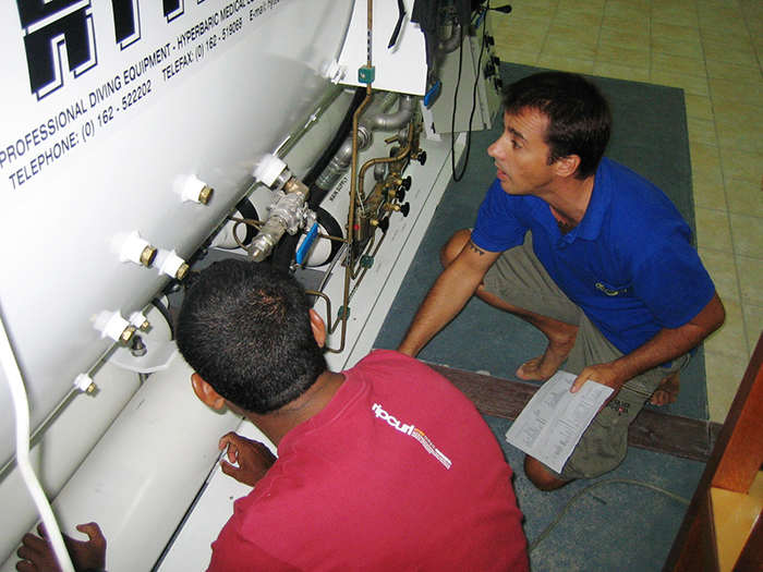 Here I am, working as a hyperbaric chamber operator in the Maldives. Running the chamber from the outside was great. I loved being able to help and make a real difference.